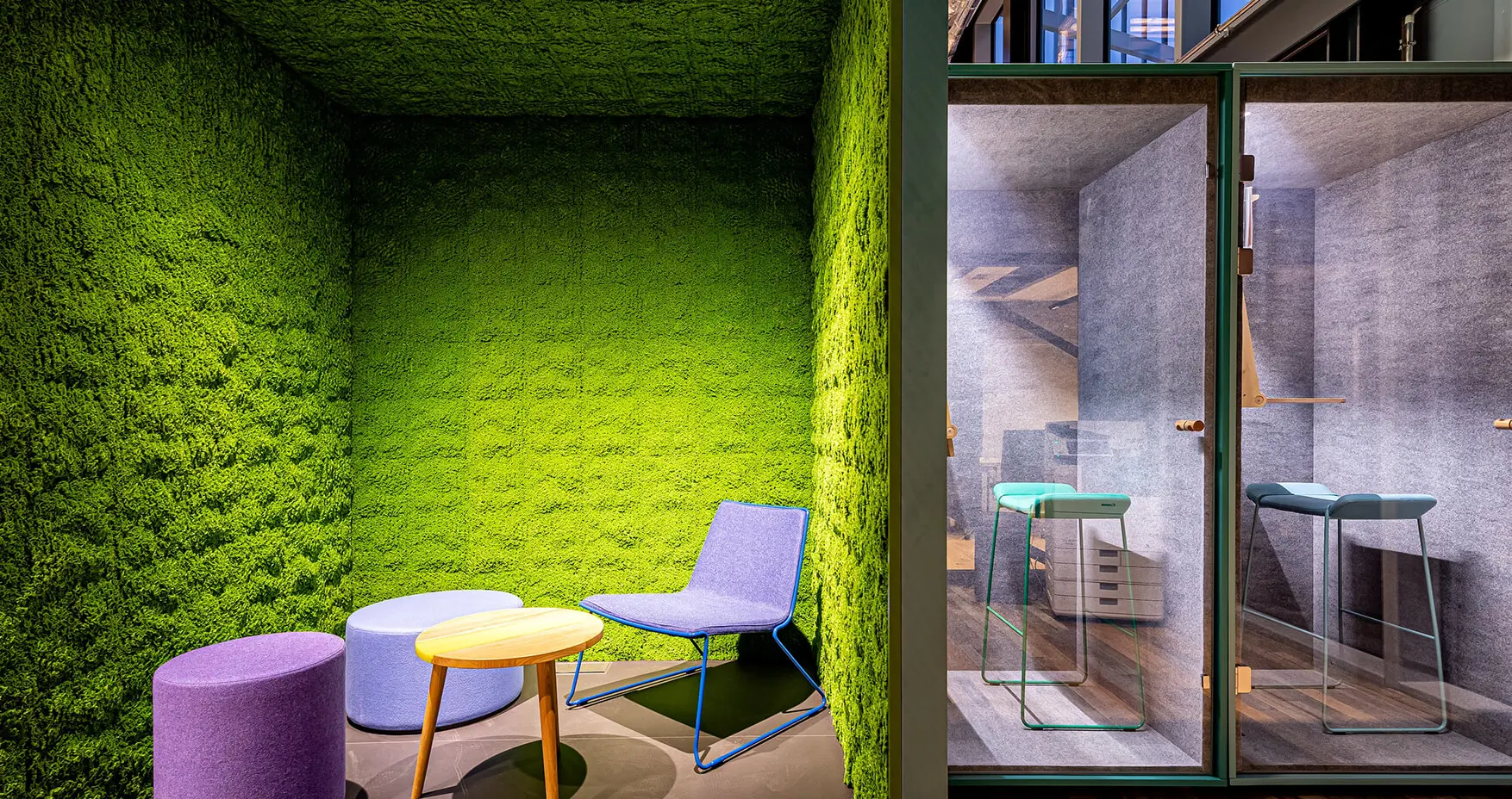 Größe: 6000qm, 4 Etagen, 50+ private Büros, 5+ Meetingräume