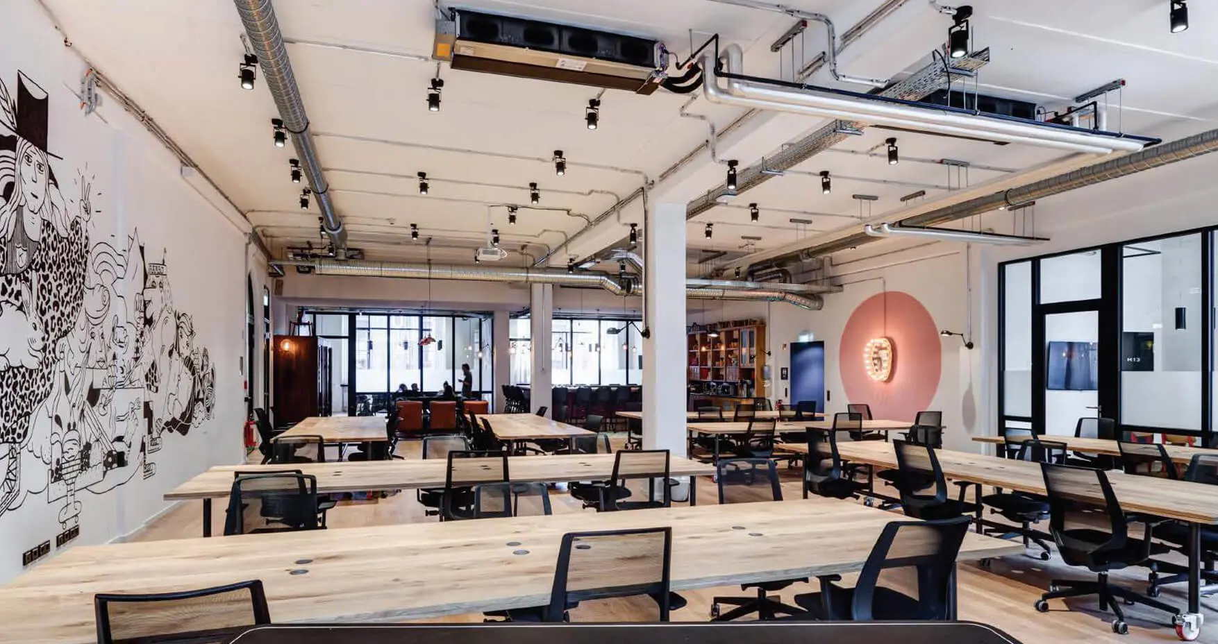 Größe: 4000qm, 4 Etagen, 136 Hot Desk, 110 private Büros, 13 Meetingräume