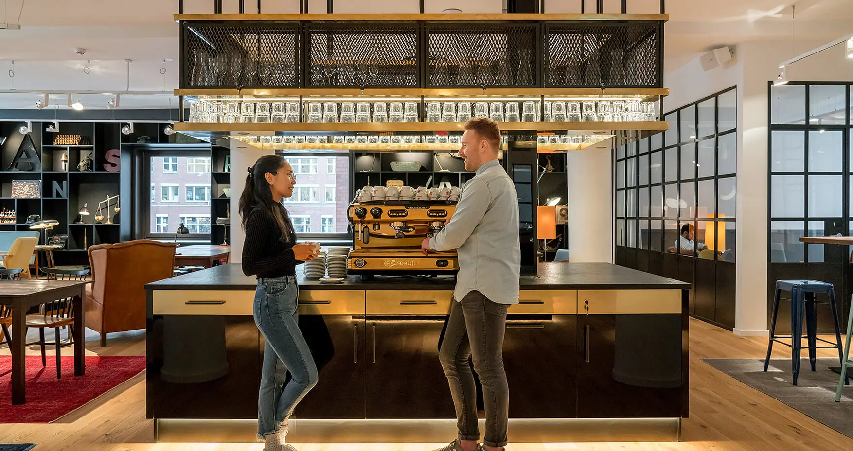 Das Ruby Works erstreckt sich in einem Bürogebäude an der Straße Steinhöft 9 auf vier Etagen. Das liegt zwischen dem Michel und der U-Bahnstation Baumwall. Es ist eines von zwei Standorten in Deutschland. Das Coworking Space besteht aus einem Bereich mit Flex Desks sowie über 30 privaten Büros. Die Gemeinschaftsflächen sind sehr stylisch eingerichtet. Der Vintage Look ist sehr einladend und warm. Die privaten Offices sind sehr hell und schlicht gestaltet. Die Ruby Philosophie heißt "Lean Luxury". Durch die Nähe zum Baumwall und auch zu den Landungsbrücken ist das Ruby Works sehr gut angebunden. Zudem befinden sich in der Nachbarschaft viele gastronomische Highlights. Sowohl mittags als auch abends stehen euch unendliche Möglichkeiten bereit.