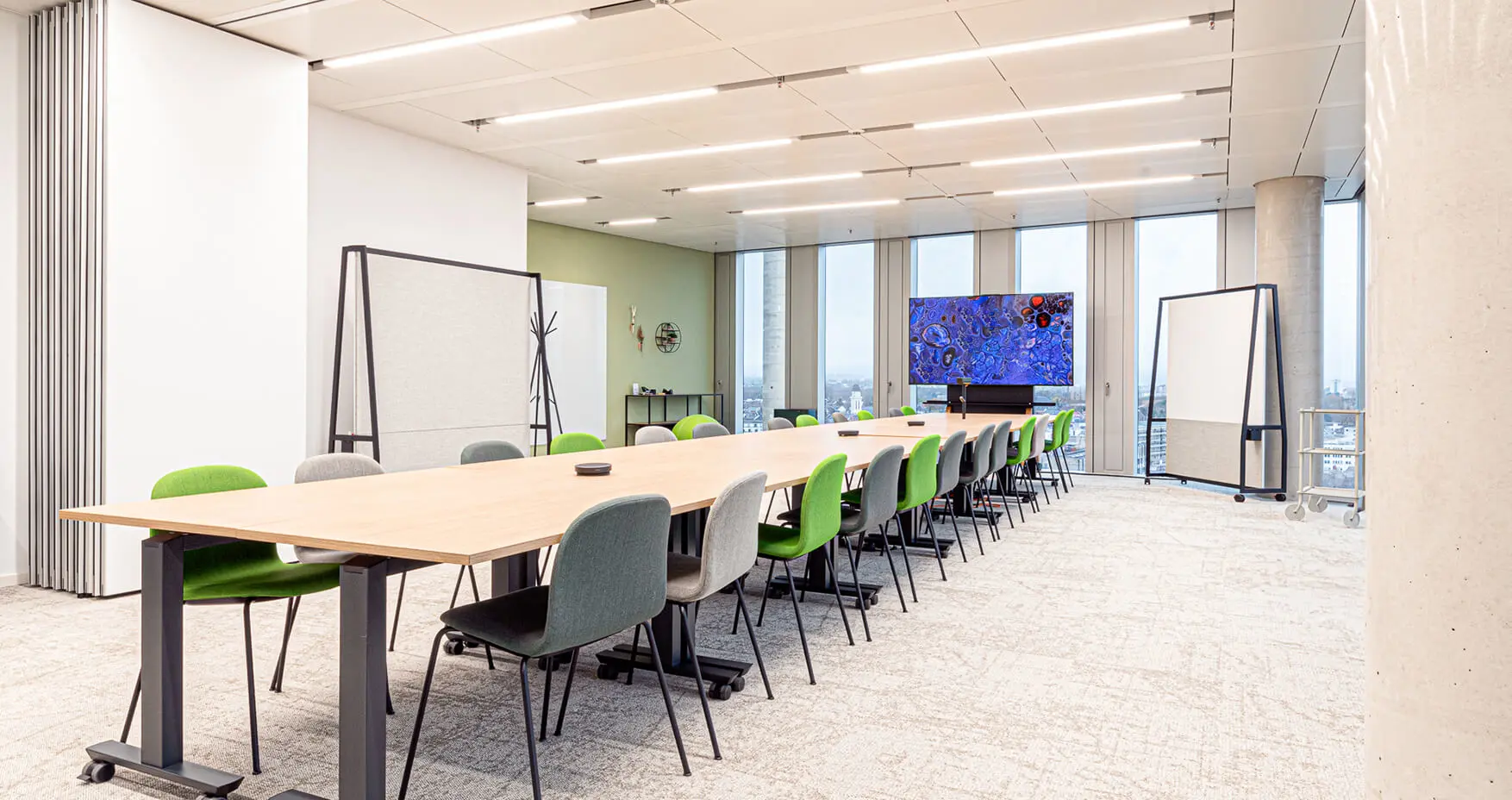 Rivvers, früher als SleevesUp bekannt, betreibt eine ganze Reihe von Coworking Spaces in Frankfurt. Der Senckenberg-Turm liegt nördlich von Hauptbahnhof. Die Anfahrt ist dementsprechend einfach. Auch gastronomisch hat die Lage viel zu bieten. SleevesUp vermietet eine Etage des Bürogebäudes flexibel an Interessenten. Man kann zwischen Arbeitsplätzen im Open Space und privaten Büros wählen.