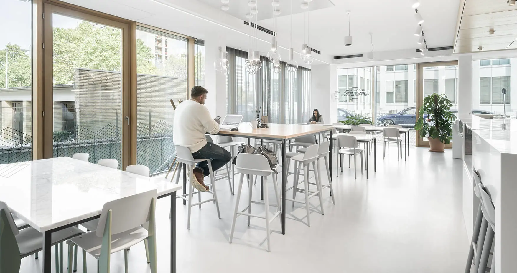 Das Spaces Kennedydamm liegt in der Kaiserswerther Straße 135 unweit vom Rheinufer. Darüber hinaus betreibt Spaces in Düsseldorf einen Standort in der Altstadt. Seit 2020 beheimatet das Coworking Space Unternehmen aller Größen. Es gibt einige Flex und Fix Desks, der Fokus liegt aber auf den über 75 privaten Büros. Diese werden ergänzt durch tolle Gemeinschaftsflächen. Dazu gehören Küchen, Lounges und auch eine Dachterrasse. Die Anreise mit Bus und Bahn ist einfach. Autofahrer können Stellplätze am Spaces anmieten. Die Umgebung bietet eine große Auswahl an Lokalen und Restaurants.